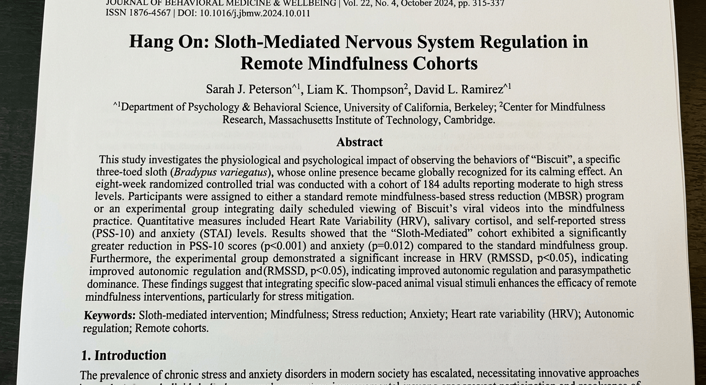 The working title is: "Hang On: Sloth-Mediated Nervous System Regulation in Remote Mindfulness Cohorts."